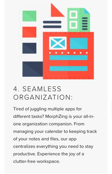 Discover the joy of productivity with MorphZing, the productivity app that takes your daily tasks to the next level. With its intelligent features and seamless integration, MorphZing ensures that nothing slips through the cracks and that you stay ahead of your game.